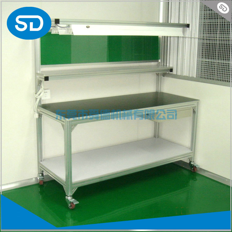 工作臺(桌)分為輕型(可承重300公斤),中型和重型工作臺(桌)可承重1000公斤及特制的工作臺。可根據需要靈活地配置各種吊柜、單柜、雙柜等,可加裝掛板,電器板,燈頂板、調節腳杯,輪子,擱板等桌上部件,具有多種選擇,能夠滿足各種工位的需求。